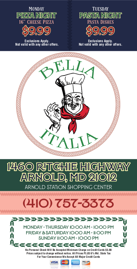 In addition many of our regular menu items can be prepared without gluten. Just ask! Though items are gluten-free, note that they are NOT ASSEMBLED IN A GLUTEN FREE KITCHEN. Bella Italia cannot guarantee that all of our pizza toppings are gluten-free or were prepared in a gluten free environment. THESE MENU ITEMS ARE NOT INTENDED FOR CUSTOMERS with SEVERE ALLERGY TO GLUTEN.